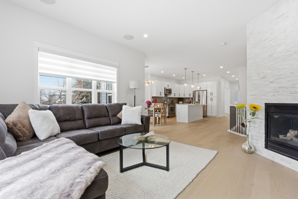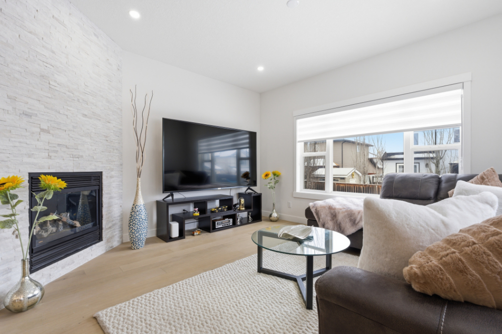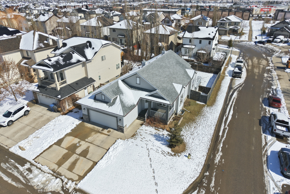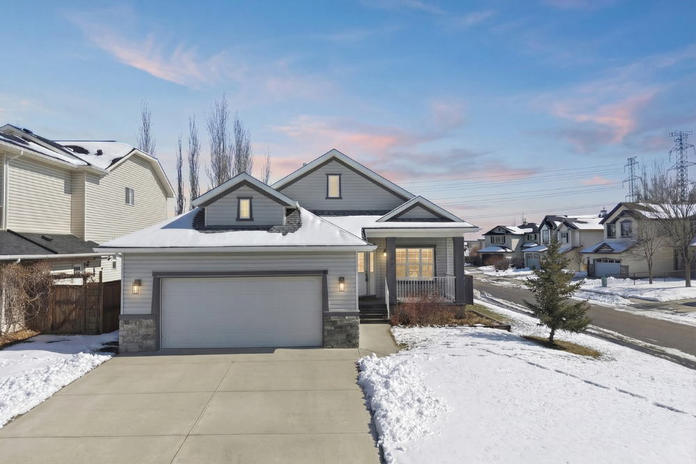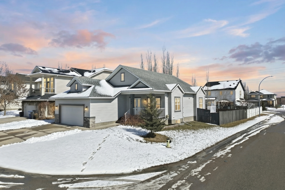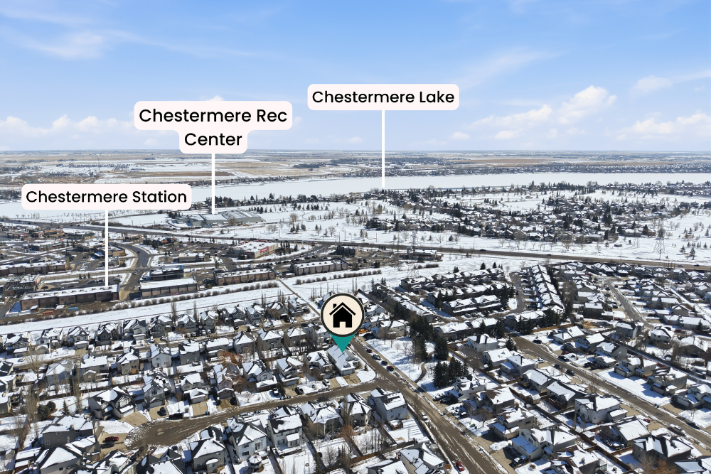 Welcome to this renovated, modern turnkey bungalow in the heart of Chestermere. This 3,000 sq ft home sits on a large corner lot and features 6 bedrooms, 4 bathrooms, RV parking, and a central air conditioning unit. Main level highlights include 9-foot ceilings, hardwood floors, a den, and an open-concept living/dining area. The bright kitchen features white cabinetry, a quartz island, and stainless steel appliances, with a stone feature wall and fireplace in the living room. The primary suite offers a modern barn door to a 5-piece ensuite with a standalone soaker tub. The lower level includes large bedrooms, a spacious rec room, two baths, and a second primary with a 3-piece bath, walk-in closet, and stylish shower. A den in the basement could easily be transformed into a theatre room. Located within walking distance to schools, shopping, the lake, and a playground across the street. This home is move-in ready for you and your family.