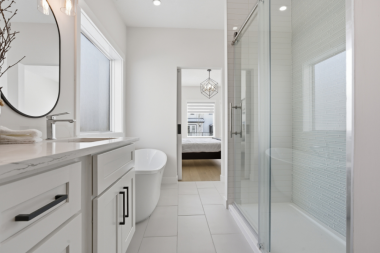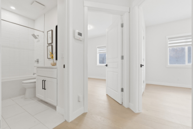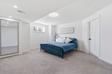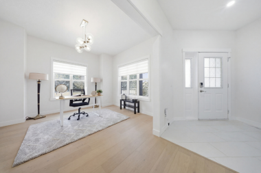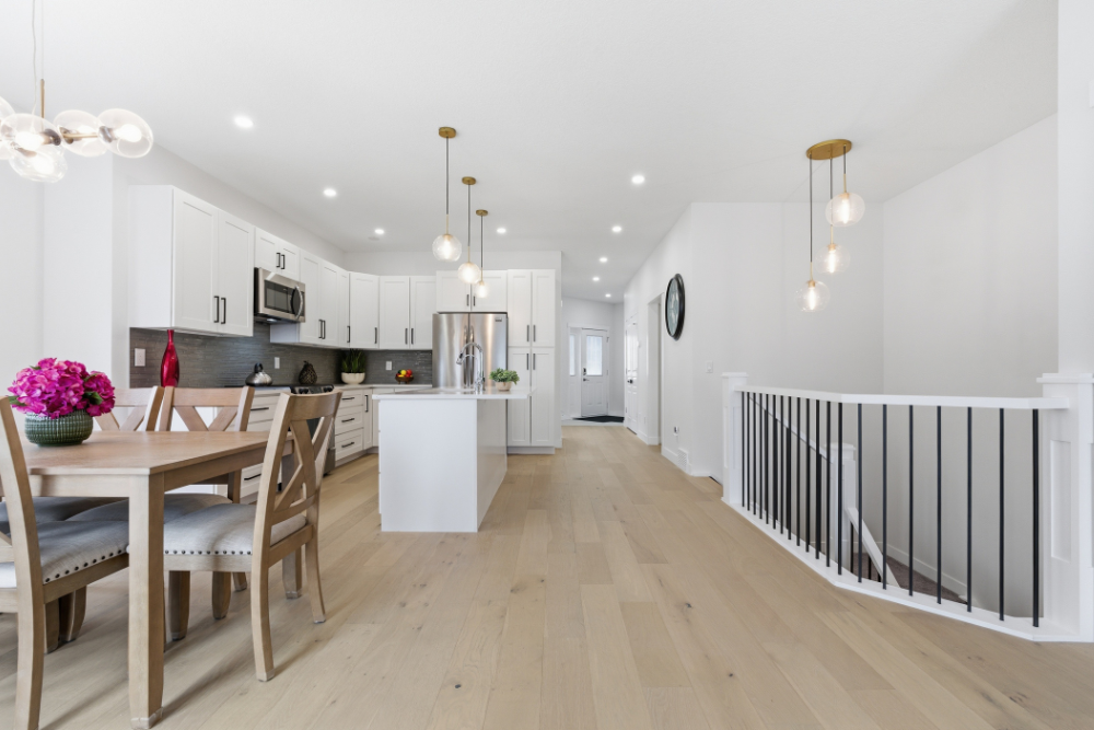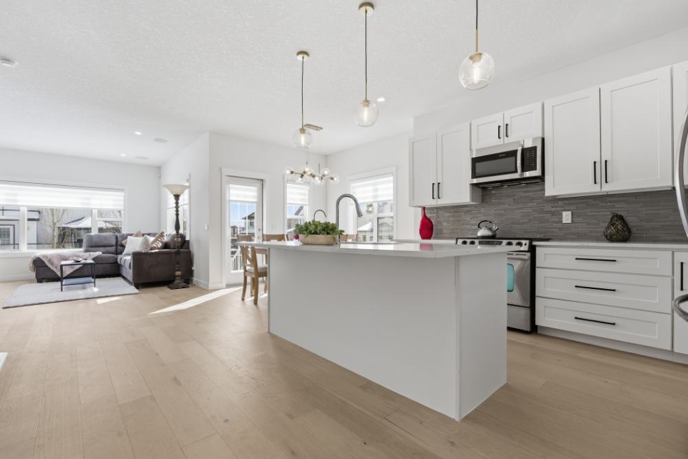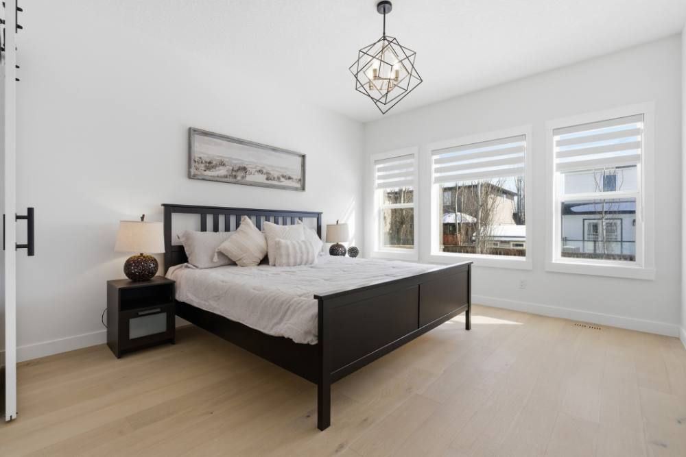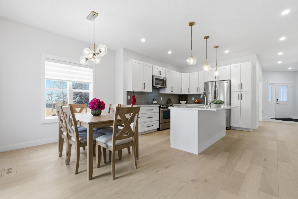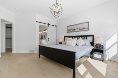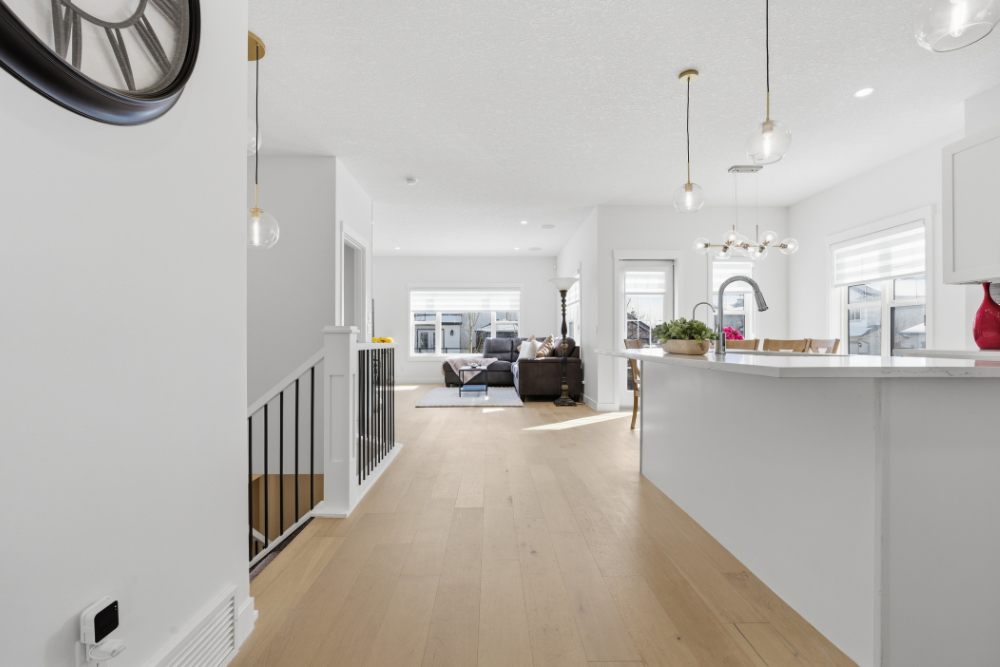 Welcome to this renovated, modern turnkey bungalow in the heart of Chestermere. This 3,000 sq ft home sits on a large corner lot and features 6 bedrooms, 4 bathrooms, RV parking, and a central air conditioning unit. Main level highlights include 9-foot ceilings, hardwood floors, a den, and an open-concept living/dining area. The bright kitchen features white cabinetry, a quartz island, and stainless steel appliances, with a stone feature wall and fireplace in the living room. The primary suite offers a modern barn door to a 5-piece ensuite with a standalone soaker tub. The lower level includes large bedrooms, a spacious rec room, two baths, and a second primary with a 3-piece bath, walk-in closet, and stylish shower. A den in the basement could easily be transformed into a theatre room. Located within walking distance to schools, shopping, the lake, and a playground across the street. This home is move-in ready for you and your family.