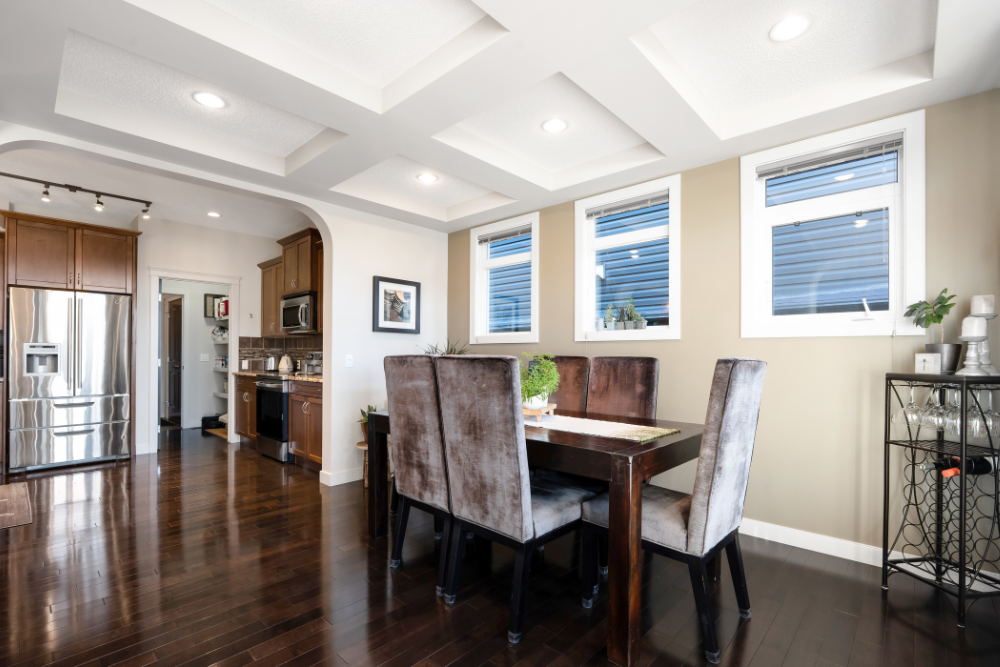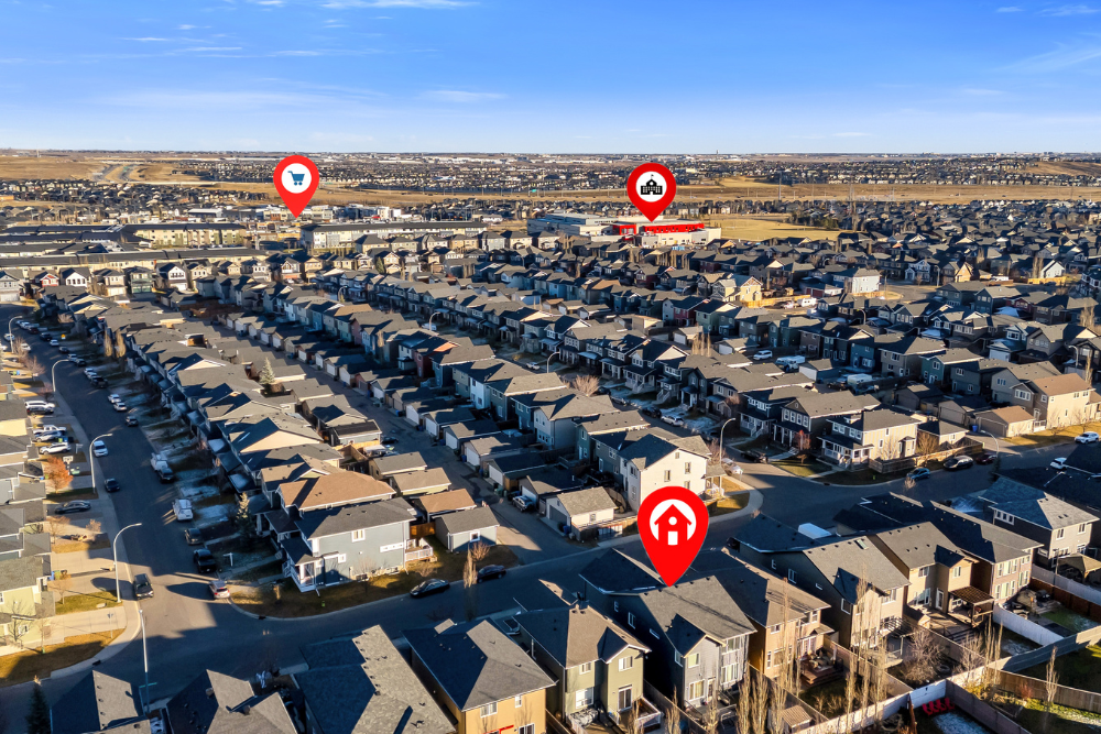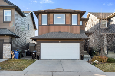 THIS RESIDENCE IS THE DEFINITION OF MOVE-IN READY WITH AN ELEVATED FINISH DESIGNED FOR THE MODERN FAMILY & STYLE SAVVY ENTERTAINER! Welcome home to 4 beds, 3.5 baths of meticulously maintained perfection in beautiful Evanston. Step inside the spacious entry to find gleaming hardwood floors leading into a magnificent open-concept main floor. The massive chef’s kitchen is a culinary dream brilliantly illuminated & features stainless steel appliances, a garburator, and a huge pantry with a convenient bar fridge and hidden appliance counter. Eating at the bar allows for great conversation with your host, and the elegant stools stay with the home. The kitchen flows seamlessly into the gorgeous dining room, highlighted by a stunning coffered ceiling and anchored by a trendy two-way fireplace that casts a beautiful warm glow, perfect for adding intimate ambiance to your meal or fueling conversation in the adjacent cozy living space. Oversized windows bathe the entire space in natural light. Upstairs, escape to your private retreat. The stunning primary bedroom offers mountain views and features a spa-like 5-piece ensuite with a deep soaker tub and separate shower—your ultimate hideaway from a hectic day. The upper level also features two generous secondary bedrooms, a 4-piece shared bath, a convenient dedicated laundry room (washer/dryer included), and a large, versatile bonus room ready for your family's needs. The professionally finished lower level (with all permits) boasts a massive rec room or a media room, a 4th bedroom & 4pc bath, ideal for guests or teens. Enjoy peace of mind knowing this home features some major recent updates. New roof & eavestroughs (2024), updated A/C Unit (2023) and a water softener. Wait! Also enjoy year-round curb appeal and simplified holidays with newly installed permanent exterior LED lights! The fully fenced, west-facing backyard is beautifully landscaped and ready for outdoor living. This immaculate, superbly maintained home simply must be seen! Call your favourite realtor and enjoy a private tour.